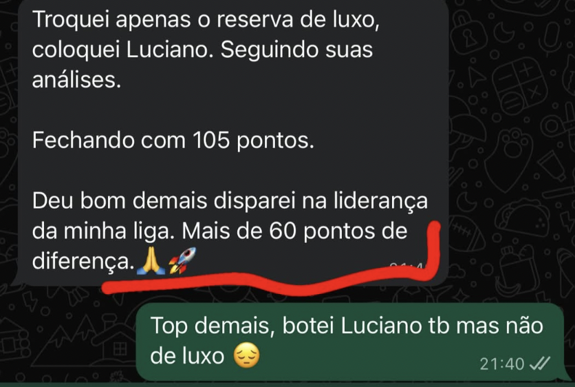 Receba o meu único time já pronto toda rodada, para só copiar e mitar.